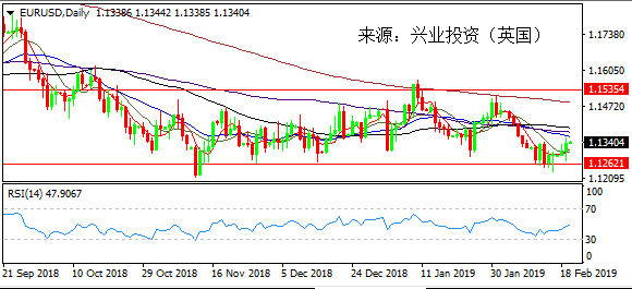 周二欧洲时段,欧元区公布的2月ZEW经济景气和现况指数均不及前值,且为负值;德国2月ZEW经济景气和现况指数也基本不如预期。同时欧央行副行长金多斯称,在较长时间内,政策仍将维持宽松。数据和鸽派言论拖累欧元/美元震荡下跌至当日最低1.1274。不过美元指数在上探97关口上方之后受阻快速回落,因纽约联储主席威廉姆斯周二表示,除非经济增长或通胀形势发生变化,否则没有必要提高利率。